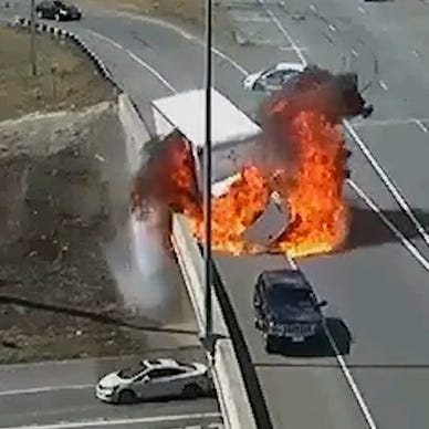 Minnesota Truck Erupts In Flames After Car Crash
